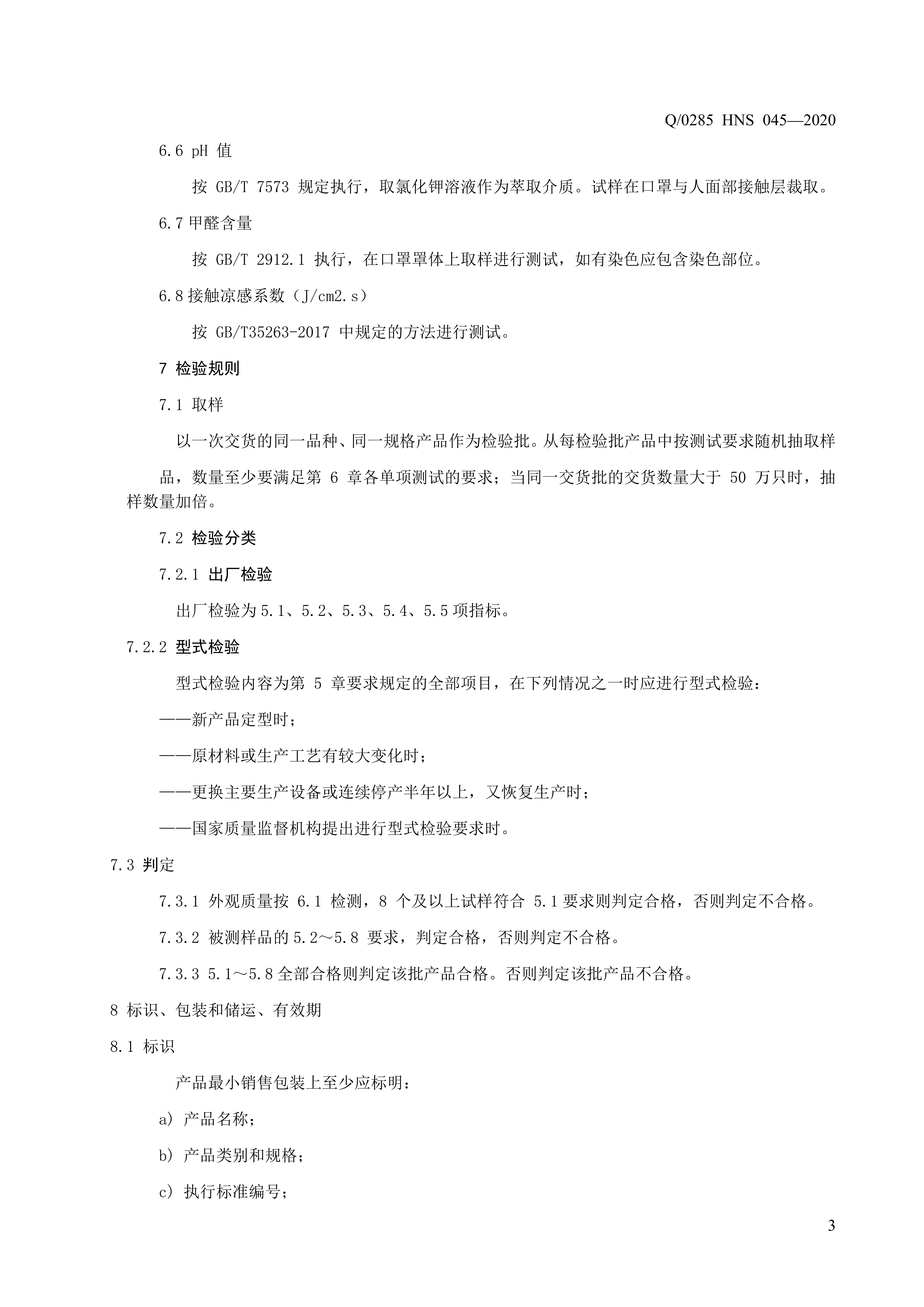 青島海諾生物工程有限公司企業(yè)標(biāo)準(zhǔn) — 薄荷清涼口罩